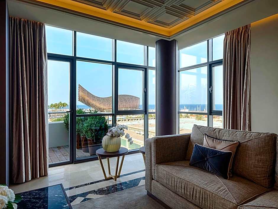 This spacious suite consists of 1 living room, 1 separate bedroom and 2 bathrooms with a bath and free toiletries. The fully equipped kitchenette features a refrigerator, a dishwasher, kitchenware and a microwave. The air-conditioned suite provides a flat-screen TV with satellite channels, soundproof walls, a mini-bar, a tea and coffee maker as well as sea views. The unit offers 1 bed.